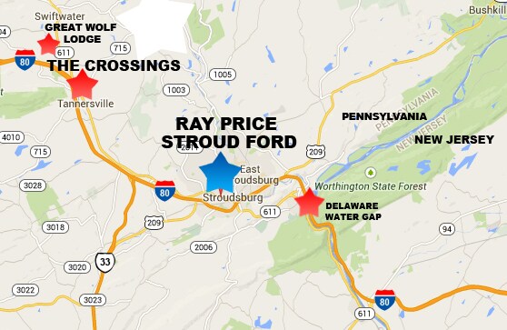 Ray Price Stroud Ford is located in Stroudsburg, Pa. We're just minutes from Route 80, New Jersey, and the Crossings Outlets in Tannersville.Â